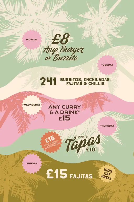 25% off food Sunday - Friday for those who hold a Blue Light Card or a Defence Discount Service card.